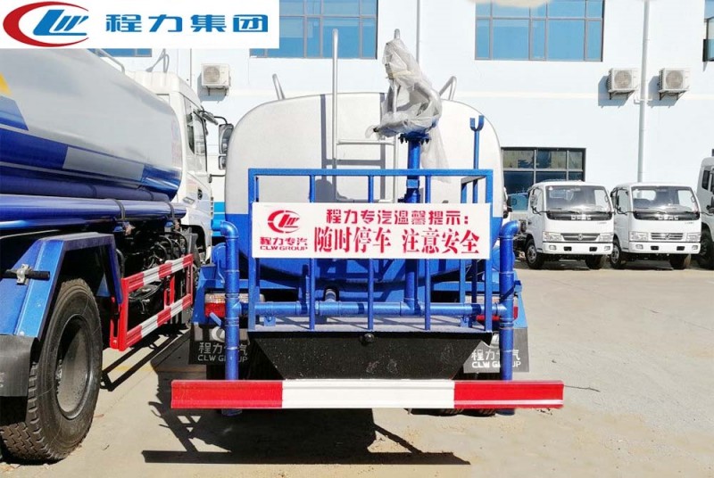 罐體有效容積5立方,罐體采用國標Q235碳鋼,罐體厚度4mm,自吸自排水泵,帶前沖裝置,后灑裝置,左右側(cè)噴裝置,尾部帶有安全操作平臺,帶消防接口,自流口,兩根輸水管,尾部綠化高炮,綠化高炮可調(diào)節(jié)直沖,大雨,中雨,毛毛雨霧,可以連續(xù)調(diào)節(jié),360度旋轉(zhuǎn);