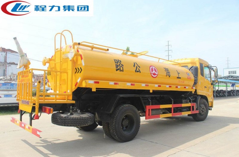 罐體有效容積12-15立方,罐體采用國標Q235碳鋼,罐體厚度4mm,自吸自排水泵,帶前沖裝置,后灑裝置,側噴裝置,高位花灑裝置,綠化高炮,安全操作平臺。
