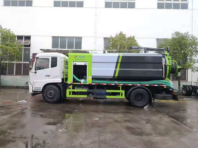 罐體總容積15立方米,清洗5方,吸污10方,兩倉互通,中間吸污罐體采用8mm碳鋼,新山東濰柴180匹馬力發動機帶2BE204水循環泵,進氣管加過濾網,后蓋4個卡子鎖緊,罐體兩側加寬平臺加護欄,后部一個150mm的球閥一個100mm的球閥,送8米吸污管,后面加一個LED工作照明燈,加LED箭頭燈,駕駛室上方裝長警燈配進口品浮高壓清洗泵,270流量,19兆帕,配60米內徑22#高壓管,組合噴頭10個,清洗卷盤安裝在后后封頭上,整車顏色可選.