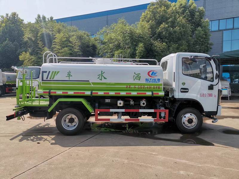 8噸灑水車,整車型號:CLW5120GSS6,底盤型號:EQ1125SJ8CDC,底盤配置:3800軸距,云內150馬力發動機,萬里揚六檔變速箱,電動門窗,原裝空調,中控鎖,ABS,方向助力,斷氣剎,8.25R20鋼絲胎,前橋2.5T,后橋5.5T.上裝配置標配:9.2方罐體,前沖后灑,后平臺高炮,程力牌灑水車專用水泵(可自吸自排),灑水車專用取力器。